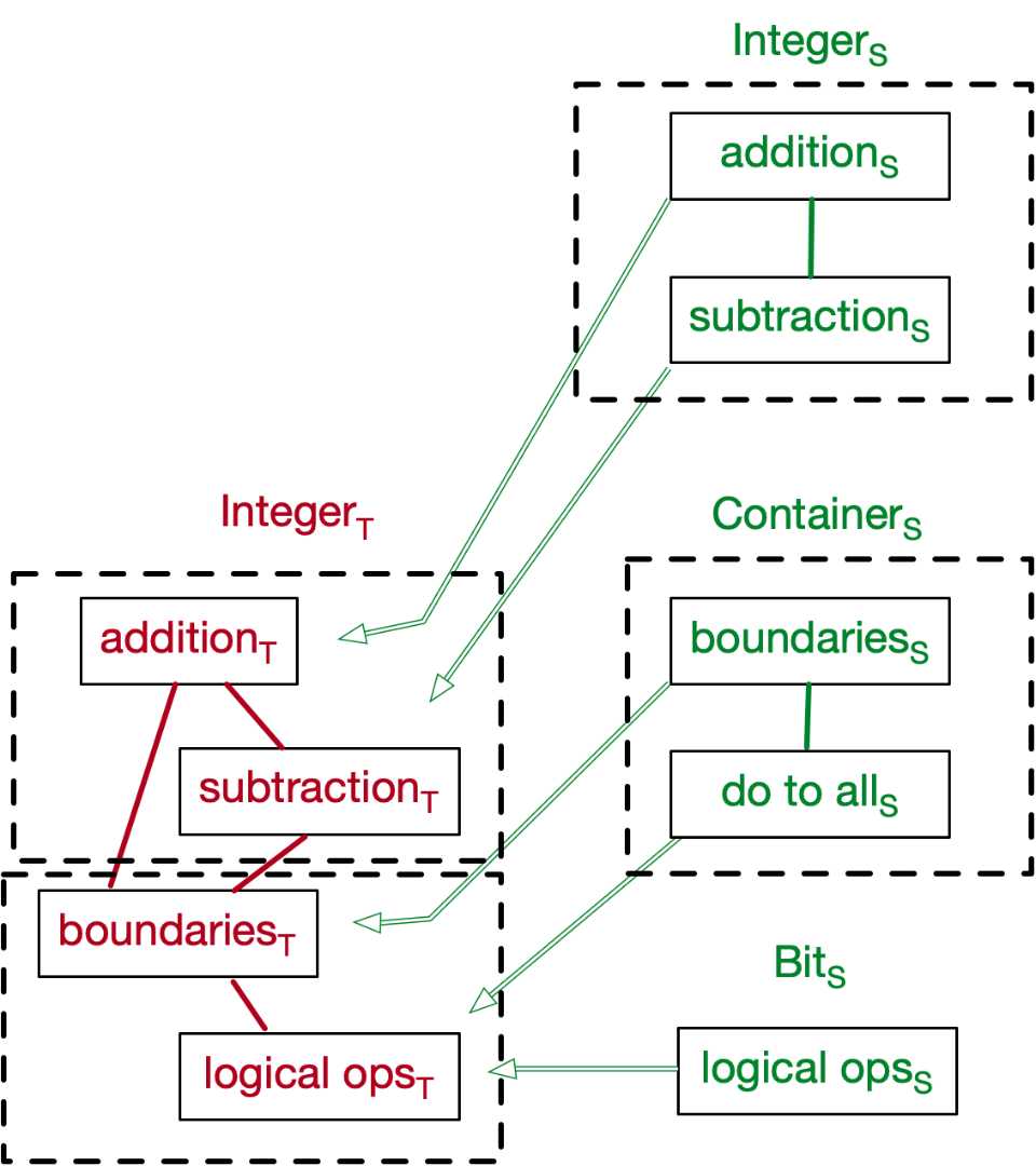 The problem here is that the target concept of Integer is mapped to two different metaphor systems. Worse, these systems are disjoint in both the source and target domains:
