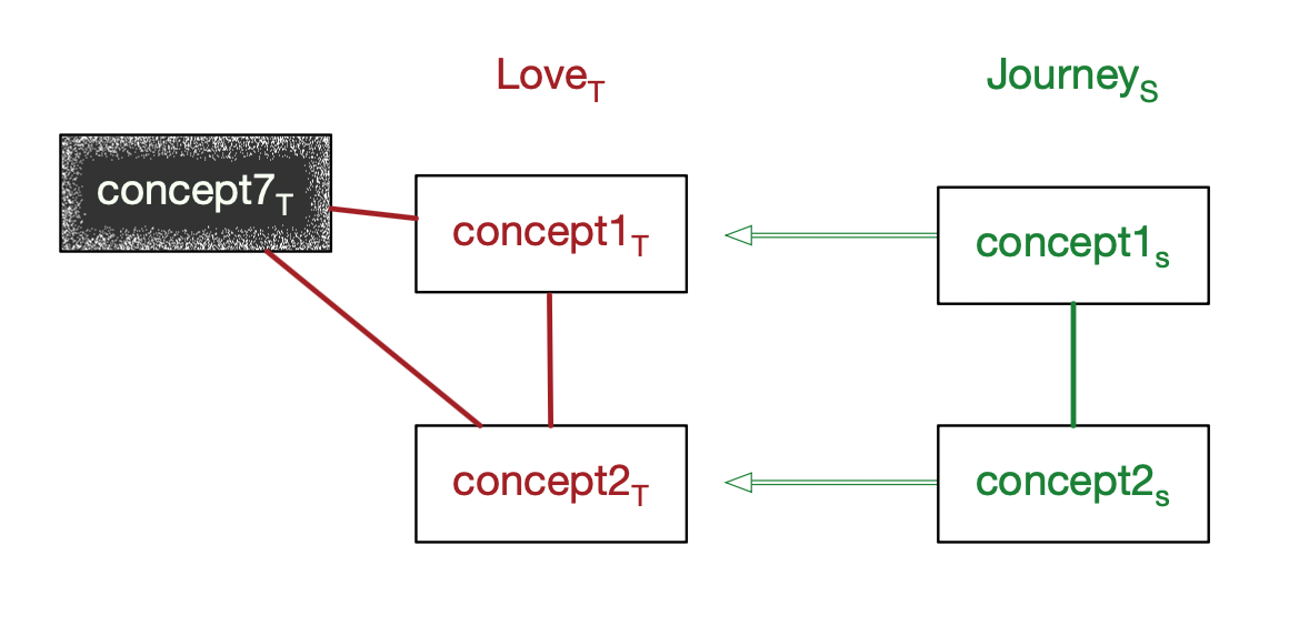 This, I think, is more serious than an Extra Source Element. If you buy Conceptual Metaphor, the lack of anything in the source domain will make problem-solving harder because that's where you do (much of) your thinking. If there's nothing corresponding to *concept7<sub>t</sub>*, you're likely to overlook it (because you're not so much looking over there on the left).