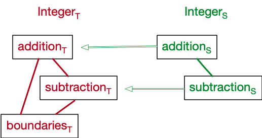 The left side is the target domain. It is about computer arithmetic (nowadays, done on 64 bit words). The Source Domain is the mathematical idea of integers.